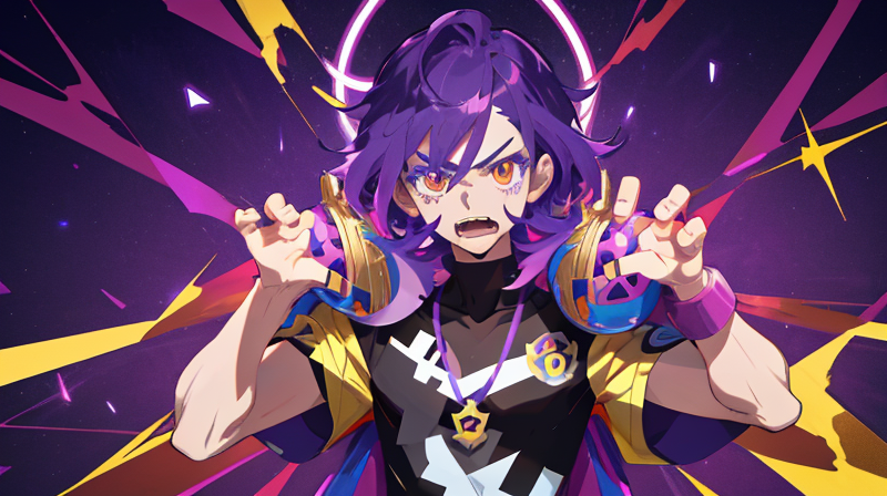 ダンデの外見は、非常に特徴的で一目でわかるデザインとなっています。紫色の長い髪、金色の瞳、褐色の肌、そして牙のように整えられた顎髭が印象的です。彼のトレードマークは、王冠を思わせるキャップ帽と、背中に羽織った豪華なマントです。このマントには、スポンサー企業のロゴが多数入っており、彼がいかに人気のあるチャンピオンかを物語っています。